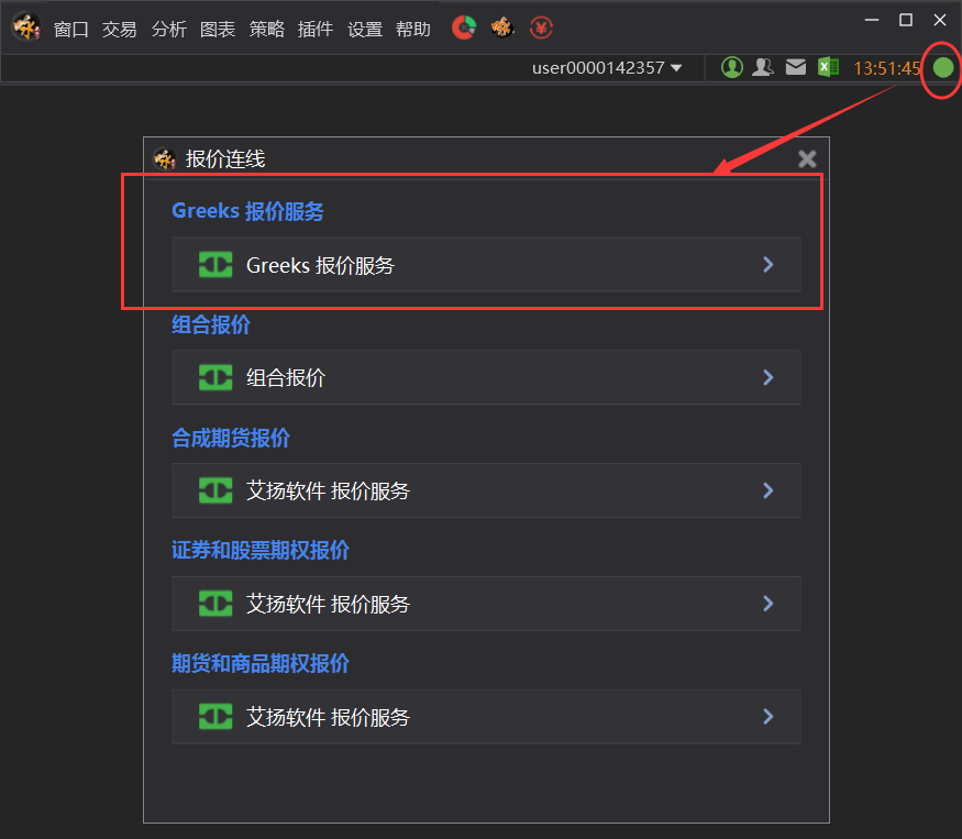 行情数据服务包含实时行情、实时期权Greeks、历史报价资料。可以通过报价连线查看实时报价来源。